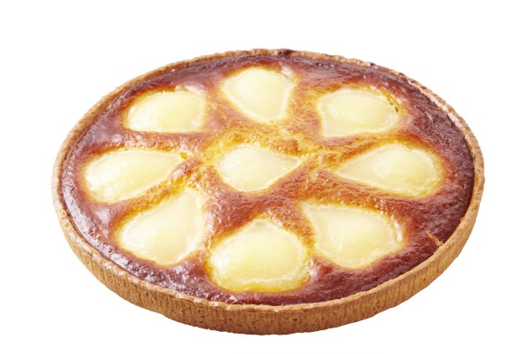 • A sweet pastry, filled with almond butter cream, on which are deposited half canned pears.
